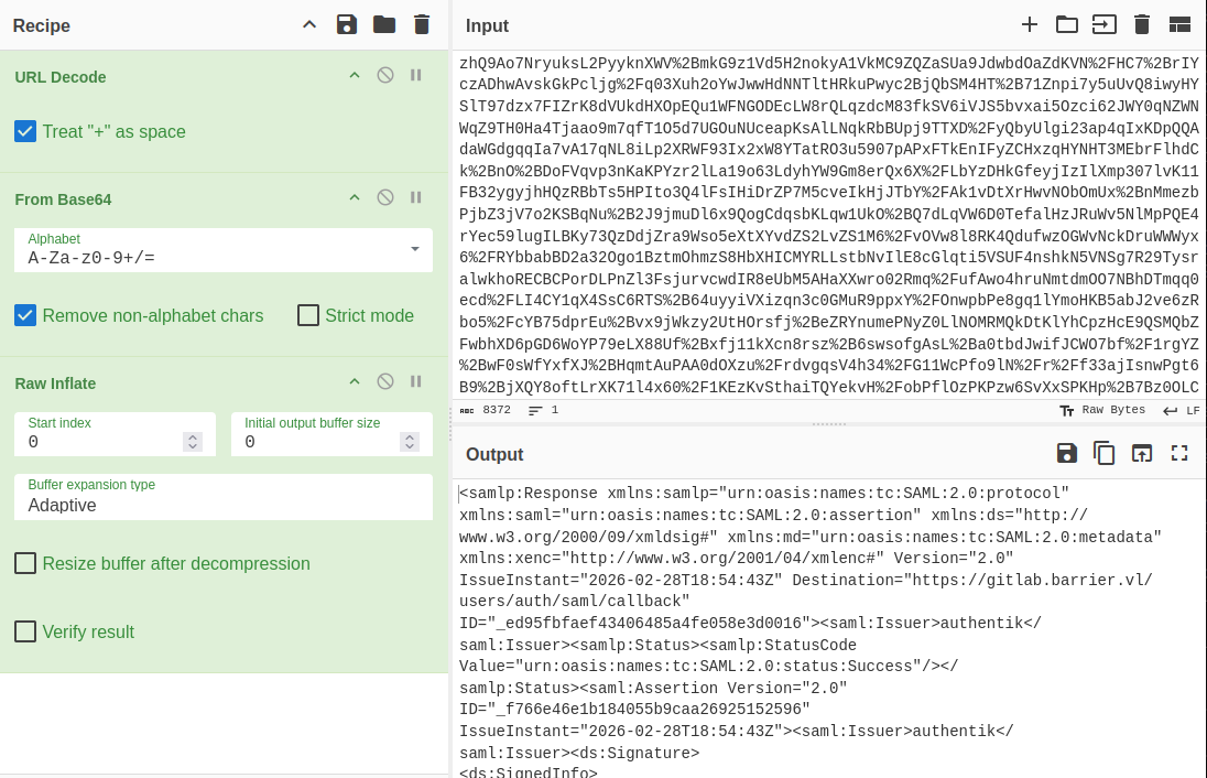 Barrier is a Linux box with GitLab, Authentik, and Apache Guacamole. I’ll exploit a SAML signature bypass vulnerability in GitLab’s Ruby SAML library to forge a SAML assertion and log in as admin. From GitLab’s CI/CD variables, I’ll recover an Authentik API token and use it to create an admin account. With Authentik admin access, I’ll impersonate a user in Guacamole to get an SSH shell. From there, I’ll find database credentials for Guacamole’s MariaDB backend and extract an SSH private key and passphrase for another user. That user’s bash history contains a password that works with sudo to get root.