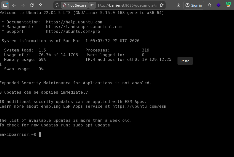oxdf@hacky$ ssh -i ~/keys/barrier-maki_adm -oHostKeyAlgorithms=+ssh-rsa maki_adm@barrier.vl